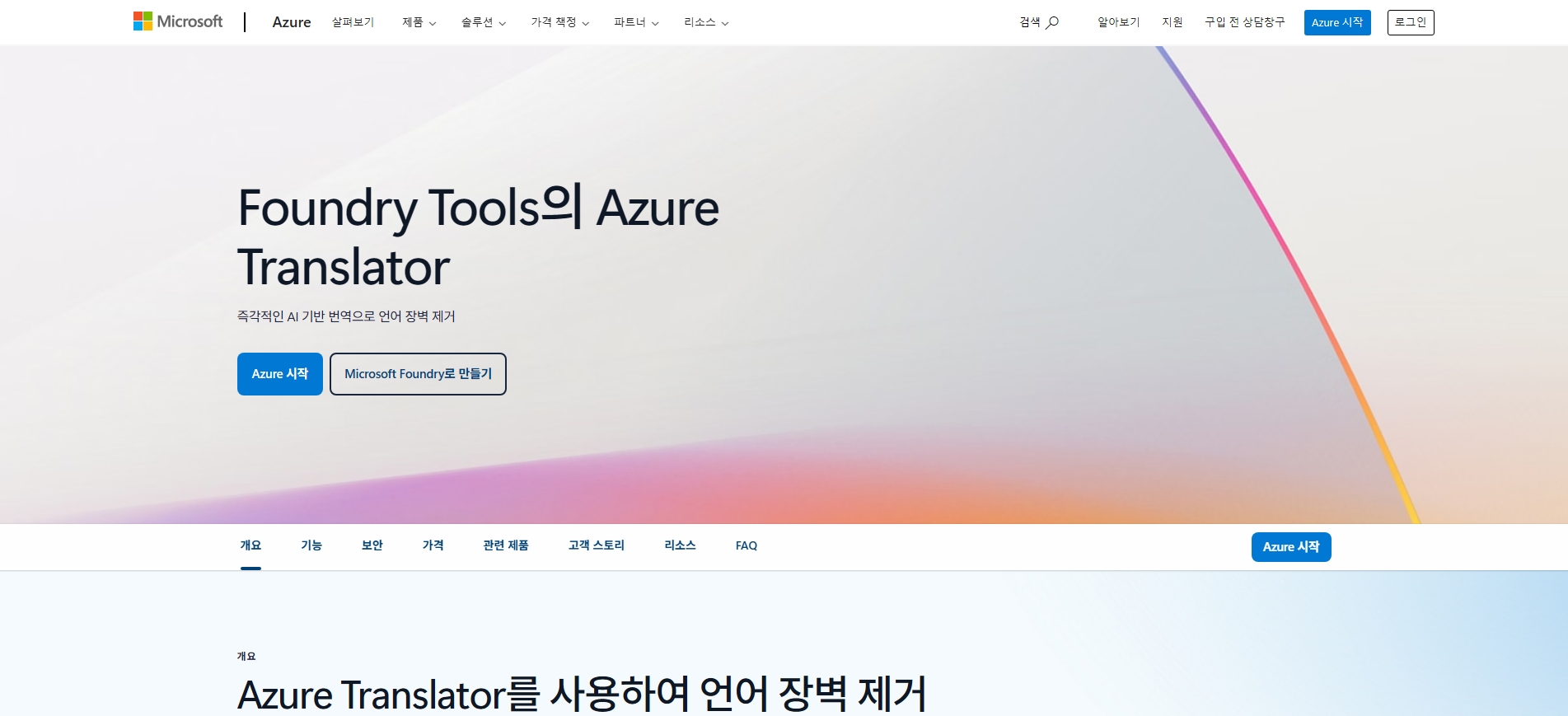 Azure Translator API´Â Microsoft AzureÀÇ ¾ð¾î AI ¼­ºñ½º·Î, ÅØ½ºÆ® ¹ø¿ªÀ» ºñ·ÔÇØ ¾ð¾î °¨Áö, »çÀü(¹ÙÀ̸µ±¸¾ó µñ¼Å³Ê¸®), À½¿ª(Transliteration), ¹®¼­ ¹ø¿ª µî ´Ù¾çÇÑ ¹ø¿ª °ü·Ã ±â´ÉÀ» Ŭ¶ó¿ìµå API·Î Á¦°øÇÕ´Ï´Ù.