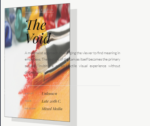 A minimalist approach challenging the viewer to find meaning in emptiness. The texture of the canvas itself becomes the primary subject, inviting a purely tactile visual experience without distraction.