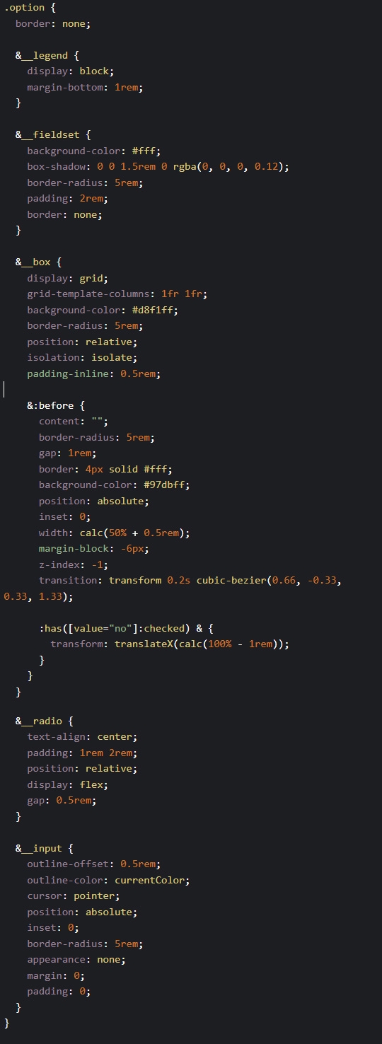 :has([value="no"]:checked) Á¶°ÇÀ¸·Î "no"°¡ üũµÇ¸é ¹è°æÆÇÀÌ ¿À¸¥ÂÊÀ¸·Î À̵¿