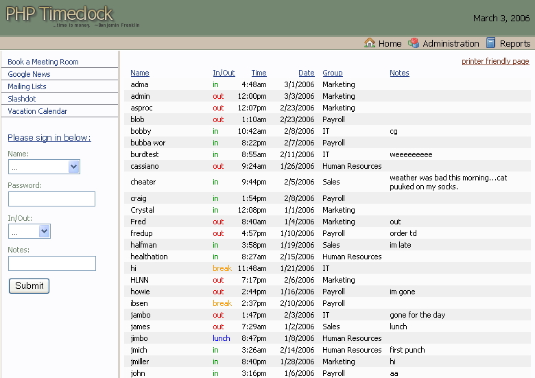 PHP Timeclock |