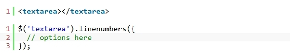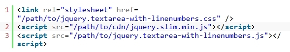 1. ÃֽŠjQuery ¶óÀ̺귯¸®°¡ Æ÷ÇÔµÈ ¹®¼¿¡ textarea-with-linenumbers Ç÷¯±×ÀÎ ÆÄÀÏÀ» ·ÎµåÇÕ´Ï´Ù.