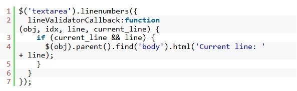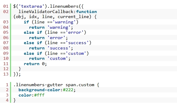 6. ÇØ´ç ÁÙ¿¡ ƯÁ¤ ¹®ÀÚ, ´Ü¾î ¶Ç´Â ±¸¹®ÀÌ Æ÷ÇԵǾî ÀÖ´Â °æ¿ì ÁÙ ¹øÈ£¸¦ °Á¶ Ç¥½ÃÇÏ´Â µ¥ lineValidatorCallback À» »ç¿ëÇÒ ¼öµµ ÀÖ½À´Ï´Ù .