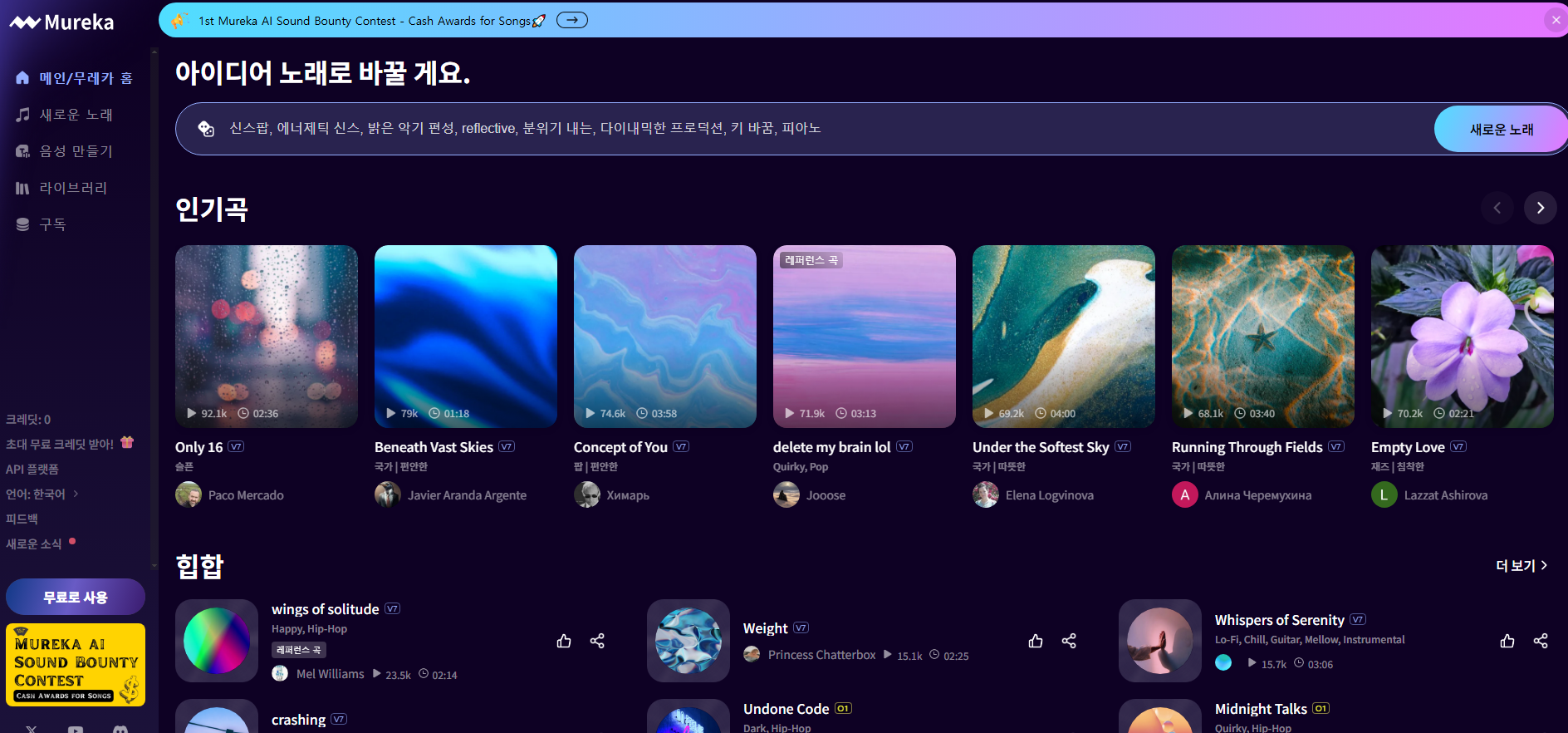 Ȩ > AI > À½¼º > AI À½¾Ç »ý¼º Ç÷§Æû mureka »ó¼¼Á¤º¸