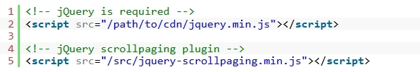 1. Ç÷¯±×ÀÎÀ» ´Ù¿î·ÎµåÇϰí jQuery ¶óÀ̺귯¸® µÚ¿¡ ¸ÞÀÎ ½ºÅ©¸³Æ® 'jquery-scrollpaging.min.js'¸¦ ·ÎµåÇÕ´Ï´Ù.