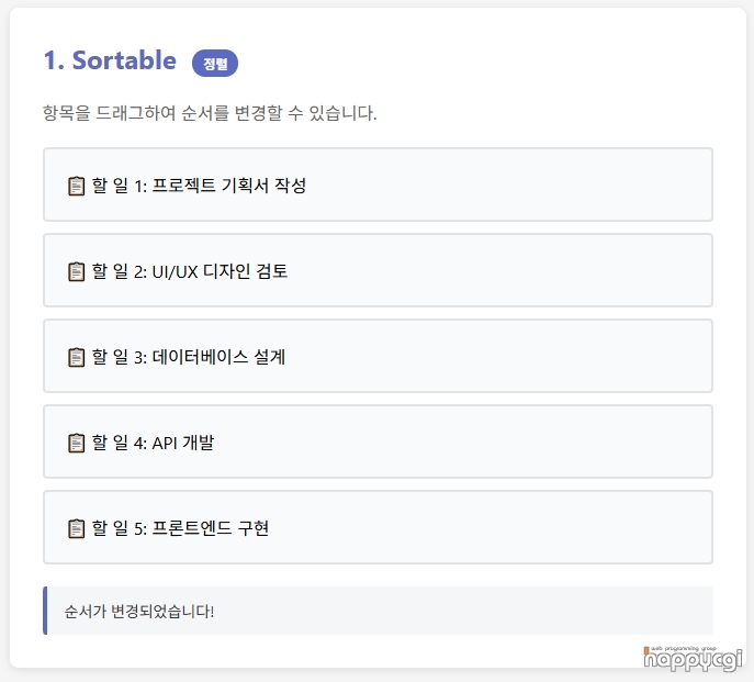¸¹Àº ±â´Éµé Áß Sortable, Swappable ±â´É¸¸ µ¥¸ð·Î ±¸ÇöÇØ µÎ¾ú½À´Ï´Ù.