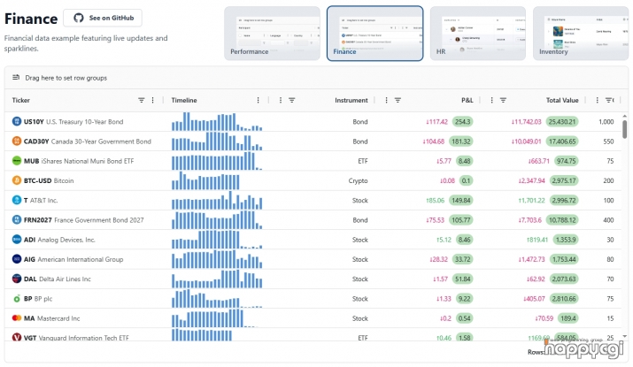 https://www.ag-grid.com/example/ ÆäÀÌÁö¿¡¼­ ´Ù¾çÇÑ µ¥¸ð¸¦ È®ÀÎÀÌ °¡´É ÇÕ´Ï´Ù.
