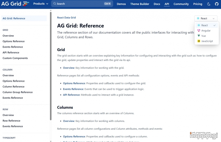 https://www.ag-grid.com/react-data-grid/reference/ ÆäÀÌÁö¿¡¼­ È®ÀÎÇÏ¿© À¥»çÀÌÆ®¿¡ Àû¿ëÀ» ÇÏ¸é µÇ°Ú½À´Ï´Ù.