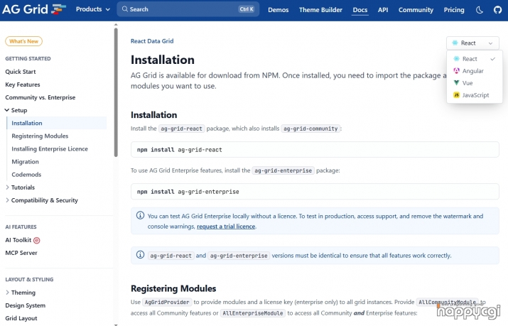 https://www.ag-grid.com/react-data-grid/installation/ ÆäÀÌÁö¿Í