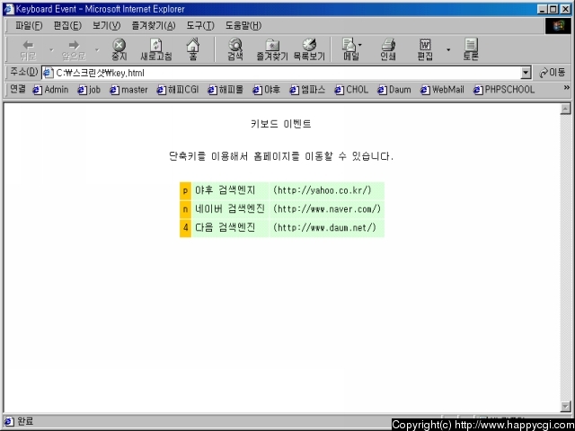 Ȩ > JAVASCRIPT > javascript ¼Ò½ºÃ¢°í > À̺¥Æ® > Å°º¸µå À̺¥Æ®¸¦ ÀÌ¿ëÇÑ »çÀÌÆ® À̵¿ »ó¼¼Á¤º¸